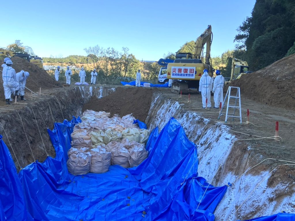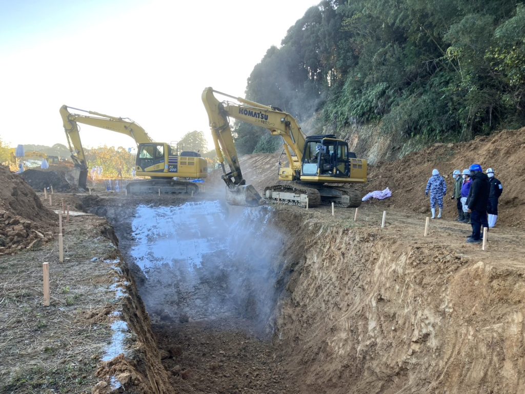 髙山修建和会長の元、21日から22日にかけて夜を徹して重機による掘削作業を実施。続いて22日午前8時より、48,000羽の殺処分が県により行われ、殺処分された鶏の運搬・埋却作業に取り組み、22日23時間に埋却作業が完了。消毒・整地作業すべての作業は23日午前中をもって無事完了いたしました。