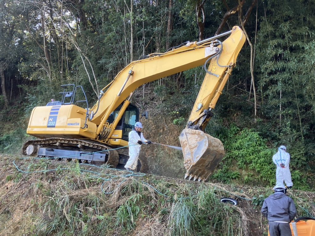 11月21日(金)日向市内の養鶏場において宮崎県内今シーズン初となる高病原性鳥インフルエンザが発生しました。同日14時20分、東臼杵郡農林振興局より要請を受け、当協会の日向市内の会員で構成される「建和会」が防疫措置のため現場へ出動いたしました。
