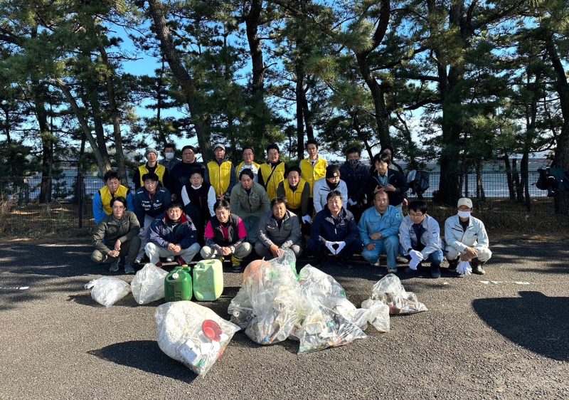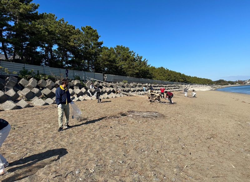 先ず、メインイベントとして、東臼杵郡門川町の向ヶ浜の海岸清掃奉仕作業を行い、好天に恵まれ、海辺の美しい風景が広がるなか、一丸となってプラスチックやごみを拾い集め、地域社会への貢献を果たしました。