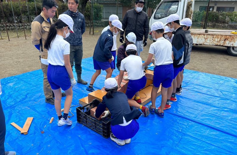 また、レンガアーチ橋づくりにも挑戦し、シンプルながらも構造や力学を学び、実際に手を動かすことで土木の技術や建設の原理を学びました。完成したアーチ橋は児童たちの協力と努力の結晶であり、自らの手で作製し実際に乗ってみたことで、地域の暮らしを支える土木の仕事の楽しさを感じて貰えたようです。