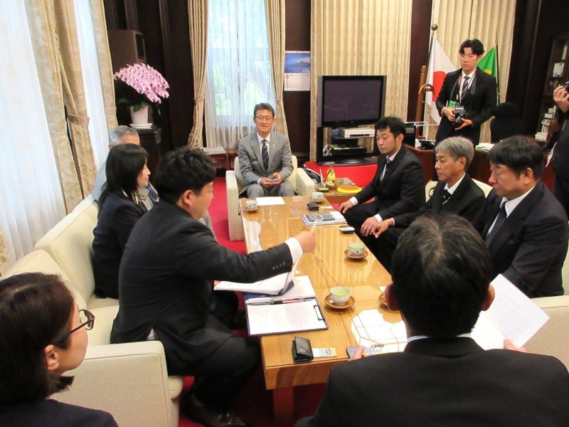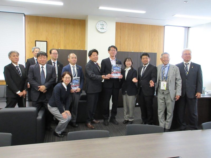 また、翌、2月26日(木)には当協会の黒木繁人会長や坂本委員長、写真家の山崎エリナ氏、復興特別委員らが宮崎県庁を訪れ、河野俊嗣知事に記録集の刊行を報告いたしました。その席上で黒木会長は本記録集について「地元の誇りを詰め込んだ」と強調し、災害時に地域を守る体制を、将来に亘って持続可能なものとするための提言として、大きな意義を持つと語りました。記録集を手に取られた河野知事は「復旧作業にあたる建設業の方々の笑顔が印象的でした」と感想を述べられ、この一冊が建設業の重要な役割を広く社会に周知する契機となることに期待を寄せられました。また、山崎氏も「厳しい環境下でも笑顔を絶やさず働く姿に、自身も元気をいただきました」と撮影当時を振り返りました。