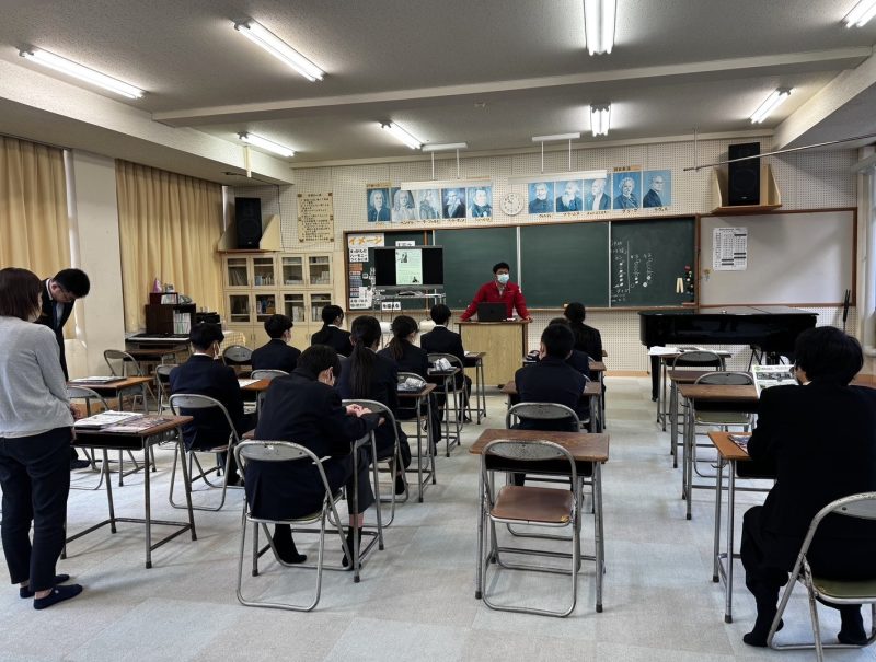本記録集は社会インフラの大切さを次世代へ伝える教材として県内すべての中学校に配布するとともに、令和8年2月25日(水)に美郷町立美郷北義務教育学校および諸塚村立諸塚中学校において、復興特別委員会の坂本浩一委員長と甲斐宣人委員が特別授業を行いました。生徒たちは実際の災害写真や復旧の記録に真剣なまなざしを向け、熱心に耳を傾けていました。「道路があるのは当たり前」ではなく、普段何気なく利用している道路が多くの奮闘によって守られ、復旧されているという事実は生徒たちの心に深く刻まれたようでした。